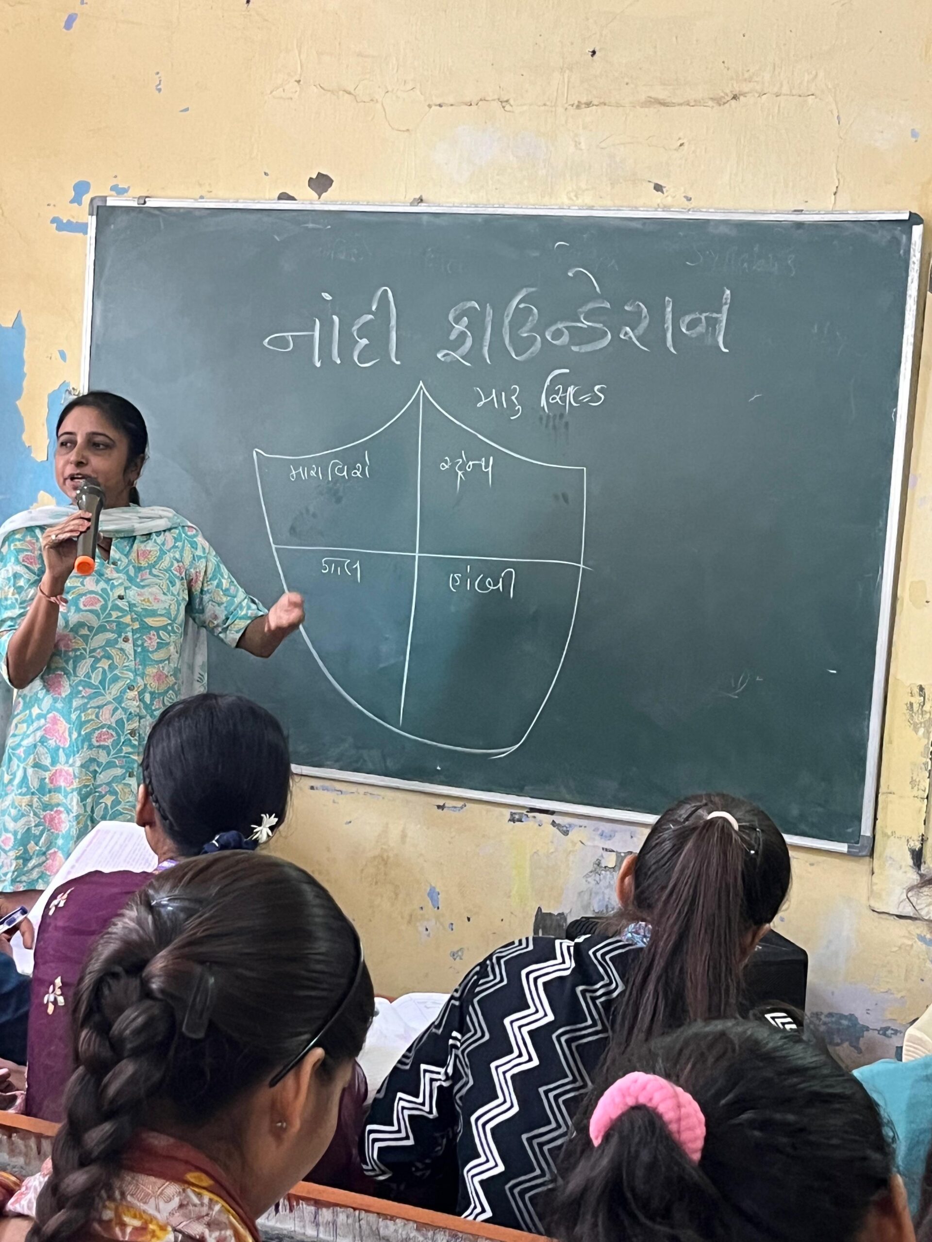 નવજીવન આર્ટસ એન્ડ કોમર્સ કૉલેજ, દાહોદ ખાતે નાંદી ફાઉન્ડેશન અને મહિન્દ્રા પ્રાઈડ ક્લાસ દ્વારા સ્કીલ ડેવલપમેન્ટ અને વુમન એમ્પાવરમેન્ટ અંગે તાલીમ તા.1/8/2025